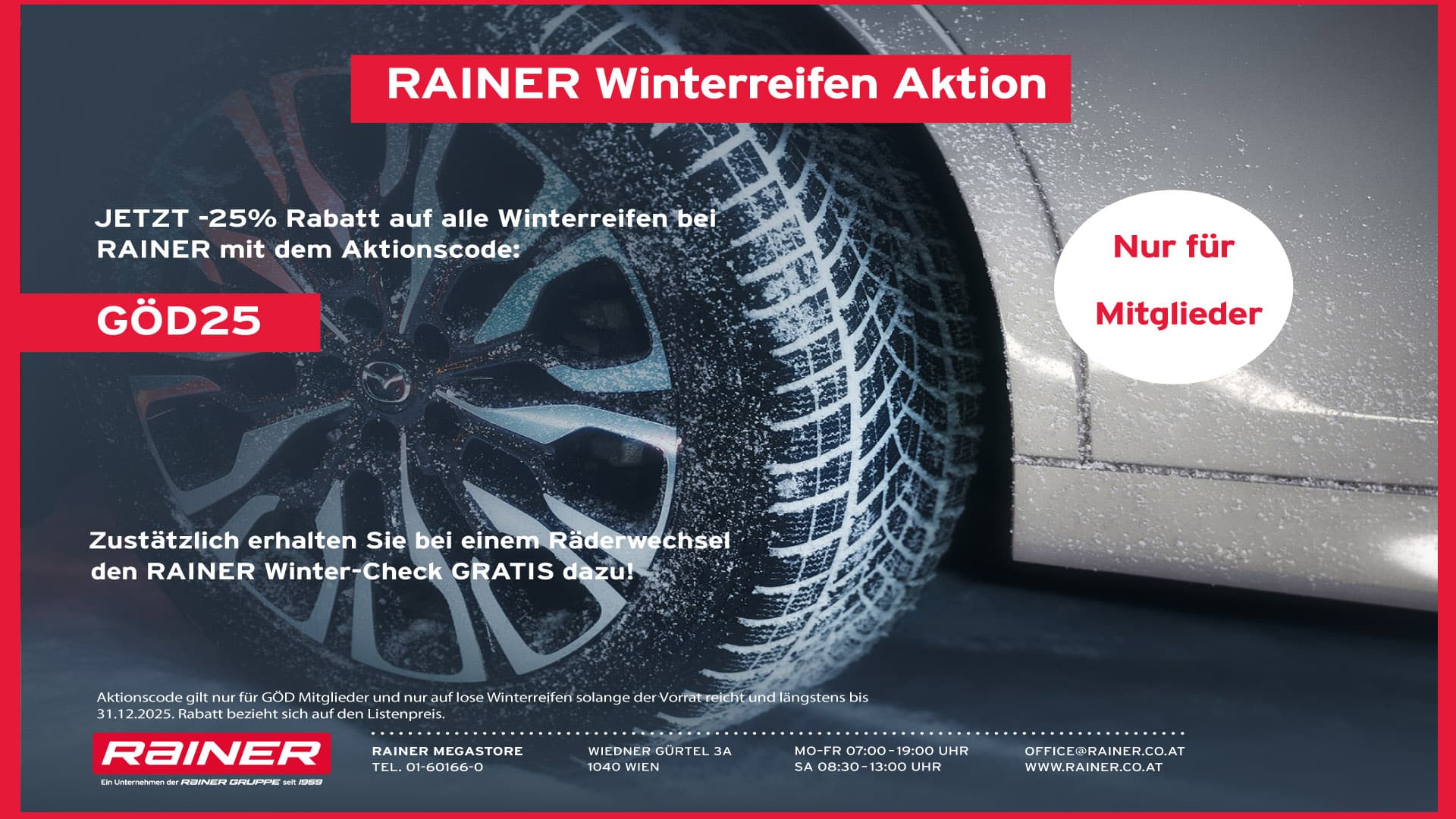 Aktionscode gilt nur für GÖD Mitglieder und nur auf lose Winterreifen solange der Vorrat reicht und längstens bis 31.12.2025.