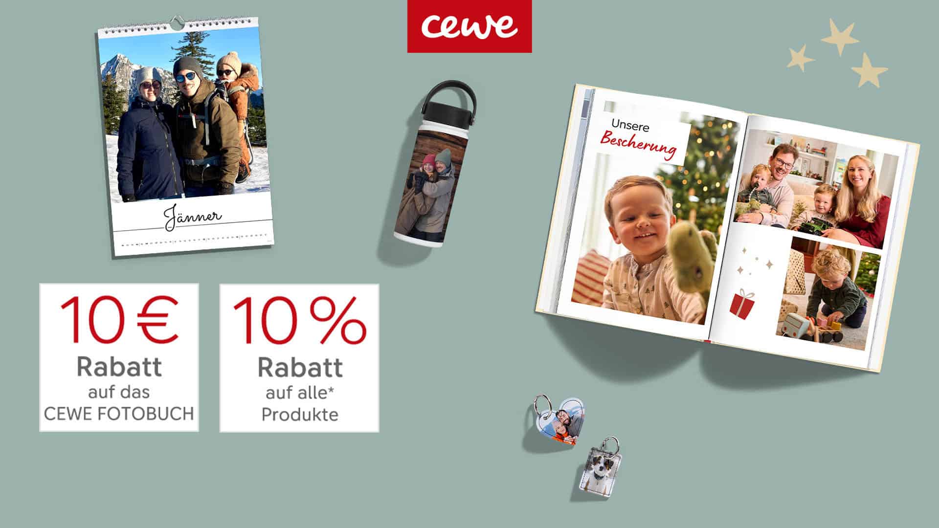 Bei Onlinebestellung unter cewe-fotoservice.at oder in der CEWE Fotowelt App 10% sparen auf alle Produkte von CEWE Fotoservice (ausgenommen CEWE FOTOBUCH) mit dem oben genannten Code. Gültig bis zum 31.12.2025. Kein Mindestbestellwert. Nicht mit anderen Aktionen und Rabatten kombinierbar. Keine Barauszahlung.